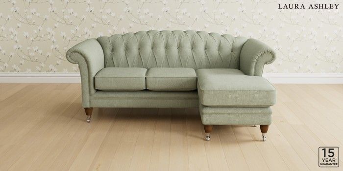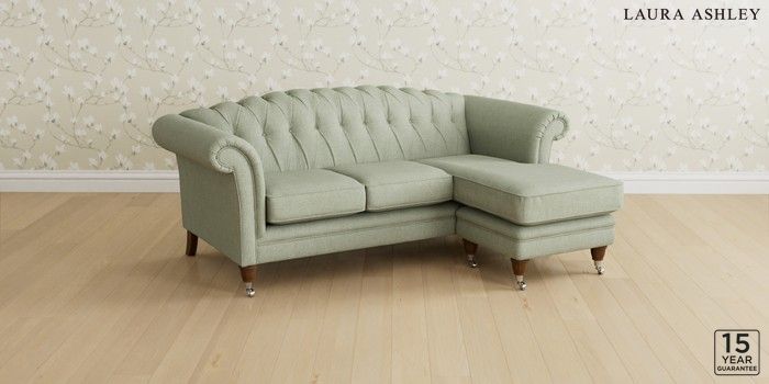 6.12.13 Buy Gloucester Button Back by Laura Ashley Medium Sofa Chaise - Universal Anneliese Sage Green Low Chrome Castor - Teak from the Next UK online shop Click here to use our accessible website