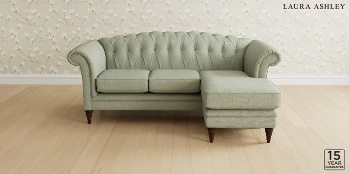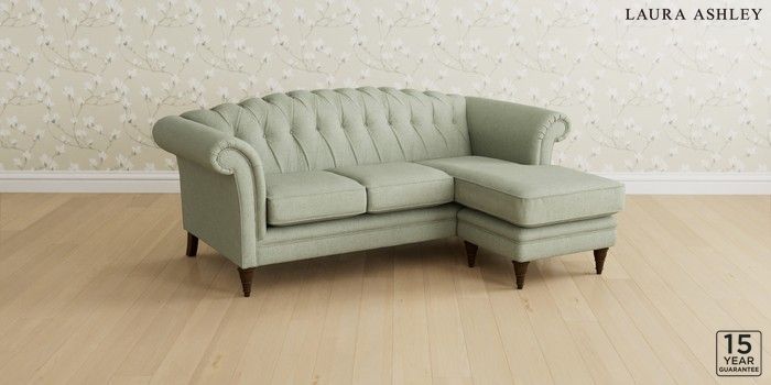 6.12.1 Buy Gloucester Button Back by Laura Ashley Medium Sofa Chaise - Universal Anneliese Sage Green Low Turned - Chestnut from the Next UK online shop Click here to use our accessible website