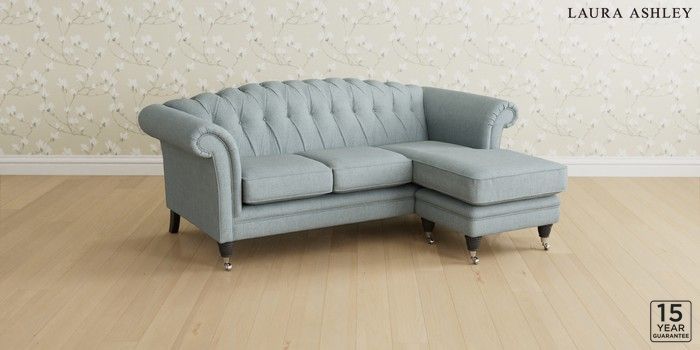 6.12.13 Buy Gloucester Button Back by Laura Ashley Medium Sofa Chaise - Universal Anneliese Seaspray Blue Low Chrome Castor - Black from the Next UK online shop Click here to use our accessible website