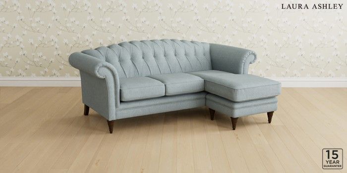 6.12.13 Buy Gloucester Button Back by Laura Ashley Medium Sofa Chaise - Universal Anneliese Seaspray Blue Low Turned - Chestnut from the Next UK online shop Click here to use our accessible website