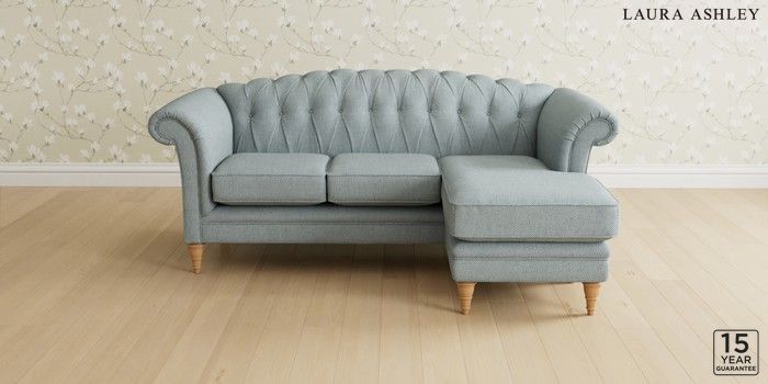 6.12.13 Buy Gloucester Button Back by Laura Ashley Medium Sofa Chaise - Universal Anneliese Seaspray Blue Low Turned - Light Oak from the Next UK online shop Click here to use our accessible website