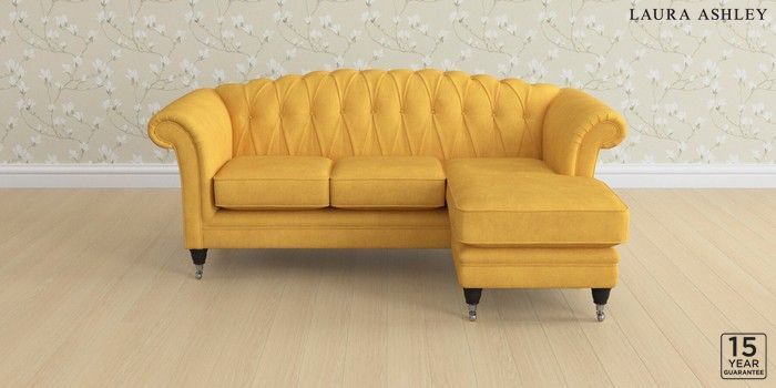 6.12.13 Buy Gloucester Button Back by Laura Ashley Medium Sofa Chaise - Universal Bainton Ochre Yellow Low Chrome Castor - Black from the Next UK online shop Click here to use our accessible website