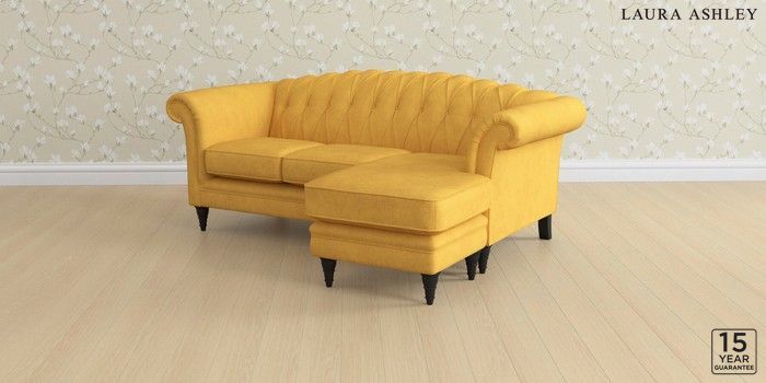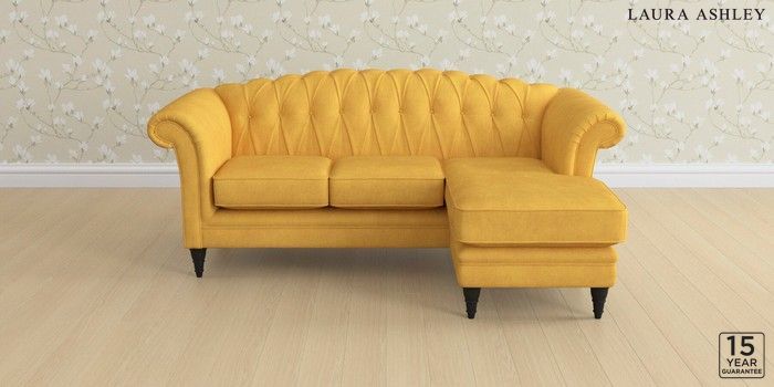 6.12.13 Buy Gloucester Button Back by Laura Ashley Medium Sofa Chaise - Universal Bainton Ochre Yellow Low Turned - Black from the Next UK online shop Click here to use our accessible website
