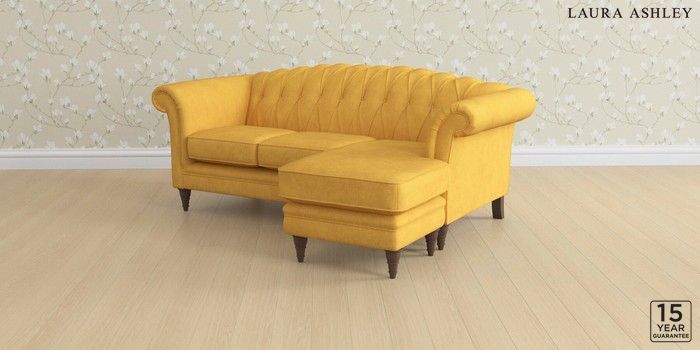 6.12.13 Buy Gloucester Button Back by Laura Ashley Medium Sofa Chaise - Universal Bainton Ochre Yellow Low Turned - Chestnut from the Next UK online shop Click here to use our accessible website