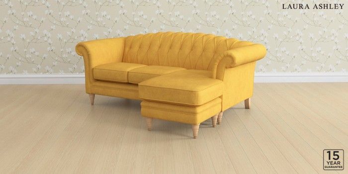 6.12.13 Buy Gloucester Button Back by Laura Ashley Medium Sofa Chaise - Universal Bainton Ochre Yellow Low Turned - Light Oak from the Next UK online shop Click here to use our accessible website