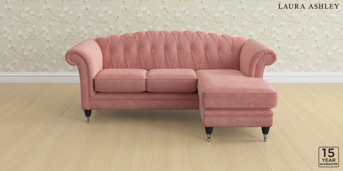 6.12.13 Buy Gloucester Button Back by Laura Ashley Medium Sofa Chaise - Universal Bainton Old Rose Pink Low Chrome Castor - Black from the Next UK online shop Click here to use our accessible website