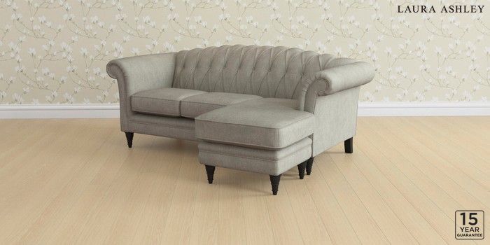 6.12.13 Buy Gloucester Button Back by Laura Ashley Medium Sofa Chaise - Universal Bainton Pale Steel Grey Low Turned - Black from the Next UK online shop Click here to use our accessible website