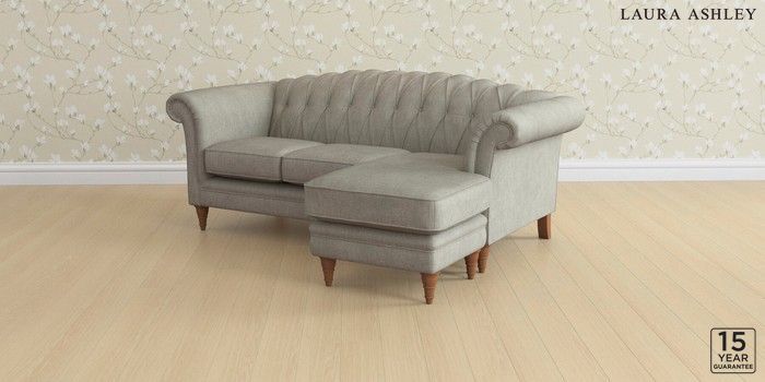 6.12.13 Buy Gloucester Button Back by Laura Ashley Medium Sofa Chaise - Universal Bainton Pale Steel Grey Low Turned - Teak from the Next UK online shop Click here to use our accessible website