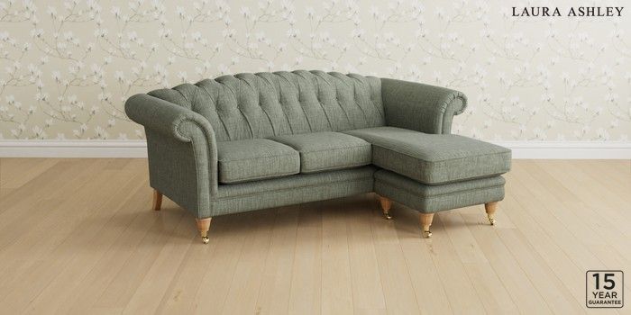 6.12.13 Buy Gloucester Button Back by Laura Ashley Medium Sofa Chaise - Universal Bainton Sage Green Low Brass Castor - Light Oak from the Next UK online shop Click here to use our accessible website