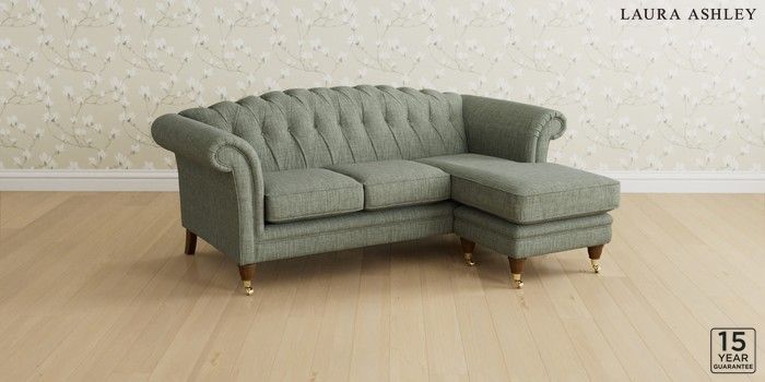 6.12.13 Buy Gloucester Button Back by Laura Ashley Medium Sofa Chaise - Universal Bainton Sage Green Low Brass Castor - Teak from the Next UK online shop Click here to use our accessible website
