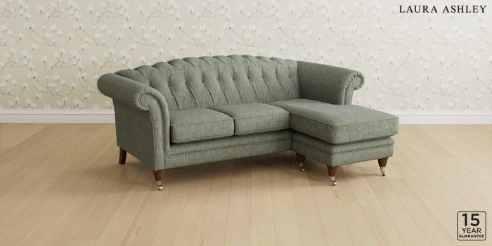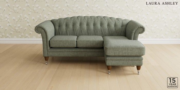 6.12.13 Buy Gloucester Button Back by Laura Ashley Medium Sofa Chaise - Universal Bainton Sage Green Low Chrome Castor - Teak from the Next UK online shop Click here to use our accessible website