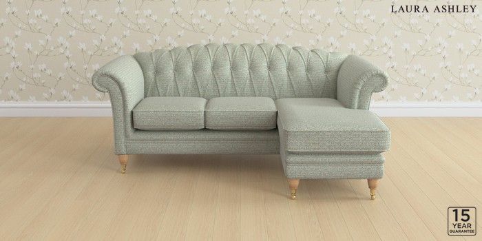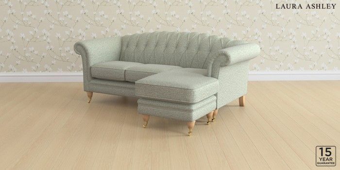 6.12.13 Buy Gloucester Button Back by Laura Ashley Medium Sofa Chaise - Universal Borwick Newport Blue Low Brass Castor - Light Oak from the Next UK online shop Click here to use our accessible website