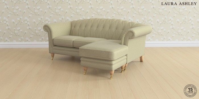 7.2.6 Buy Gloucester Button Back by Laura Ashley Medium Sofa Chaise - Universal Chequers Hedgerow Green Low Brass Castor - Light Oak from the Next UK online shop Click here to use our accessible website