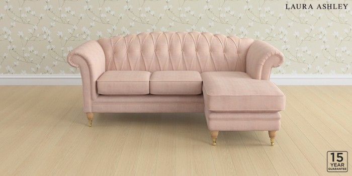 6.12.13 Buy Gloucester Button Back by Laura Ashley Medium Sofa Chaise - Universal Edwin Chenille Blush Pink Low Brass Castor - Light Oak from the Next UK online shop Click here to use our accessible website