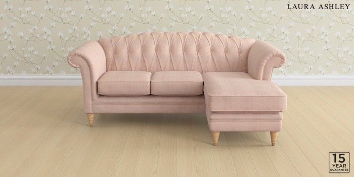 6.12.13 Buy Gloucester Button Back by Laura Ashley Medium Sofa Chaise - Universal Edwin Chenille Blush Pink Low Turned - Light Oak from the Next UK online shop Click here to use our accessible website