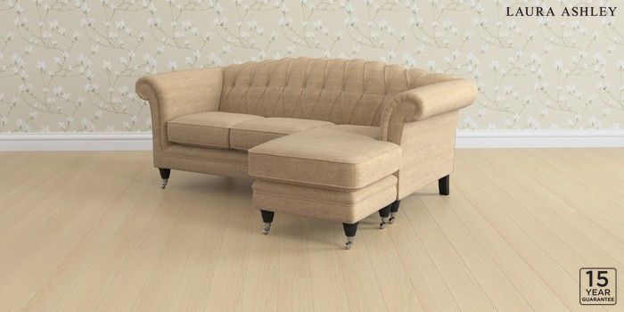 6.12.1 Buy Gloucester Button Back by Laura Ashley Medium Sofa Chaise - Universal Edwin Chenille Gold Natural Low Chrome Castor - Black from the Next UK online shop Click here to use our accessible website