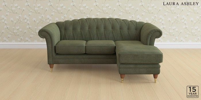 6.12.1 Buy Gloucester Button Back by Laura Ashley Medium Sofa Chaise - Universal Edwin Chenille Hedgerow Green Low Brass Castor - Teak from the Next UK online shop Click here to use our accessible website