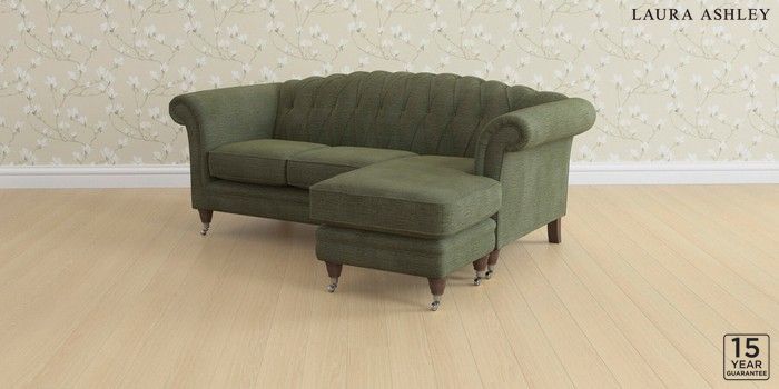 6.12.1 Buy Gloucester Button Back by Laura Ashley Medium Sofa Chaise - Universal Edwin Chenille Hedgerow Green Low Chrome Castor - Chestnut from the Next UK online shop Click here to use our accessible website