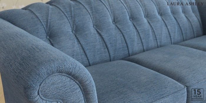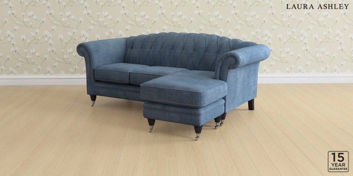 6.12.13 Buy Gloucester Button Back by Laura Ashley Medium Sofa Chaise - Universal Edwin Chenille Seaspray Blue Low Chrome Castor - Black from the Next UK online shop Click here to use our accessible website