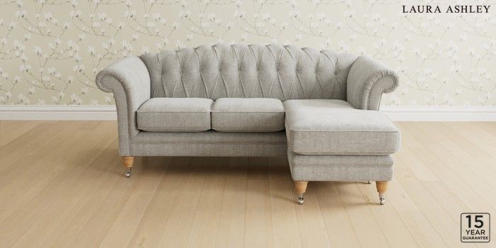 6.12.1 Buy Gloucester Button Back by Laura Ashley Medium Sofa Chaise - Universal Edwin Chenille Silver Grey Low Chrome Castor - Light Oak from the Next UK online shop Click here to use our accessible website