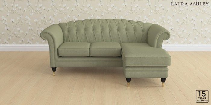 6.12.1 Buy Gloucester Button Back by Laura Ashley Medium Sofa Chaise - Universal Edwin Herringbone Hedgerow Green Low Brass Castor - Black from the Next UK online shop Click here to use our accessible website