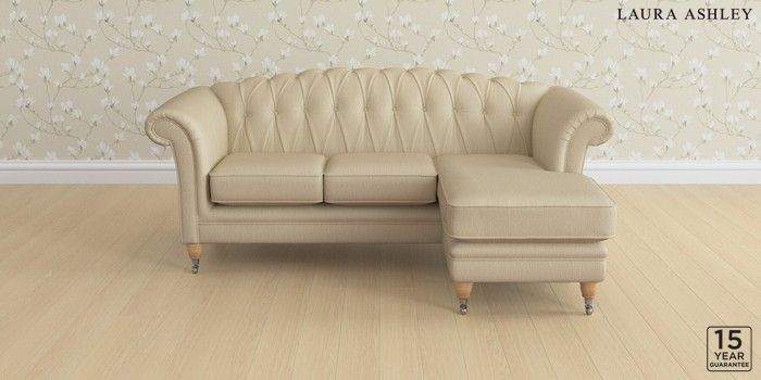 6.12.1 Buy Gloucester Button Back by Laura Ashley Medium Sofa Chaise - Universal Edwin Herringbone Natural Low Chrome Castor - Light Oak from the Next UK online shop Click here to use our accessible website