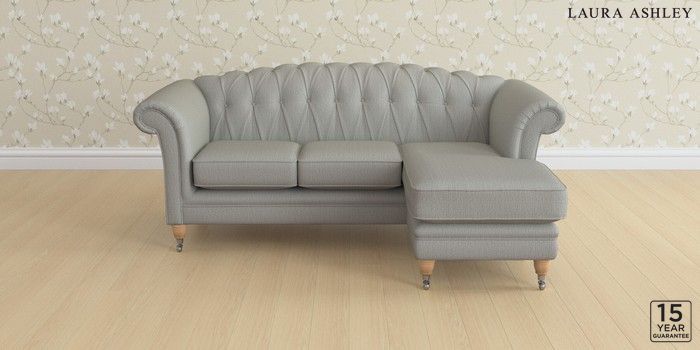 6.12.1 Buy Gloucester Button Back by Laura Ashley Medium Sofa Chaise - Universal Edwin Herringbone Pale Steel Grey Low Chrome Castor - Light Oak from the Next UK online shop Click here to use our accessible website