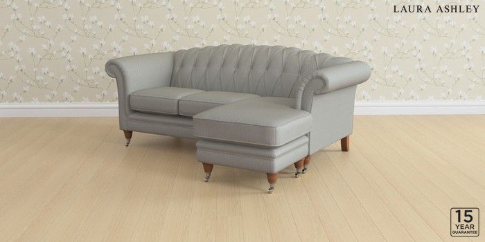 6.12.1 Buy Gloucester Button Back by Laura Ashley Medium Sofa Chaise - Universal Edwin Herringbone Pale Steel Grey Low Chrome Castor - Teak from the Next UK online shop Click here to use our accessible website