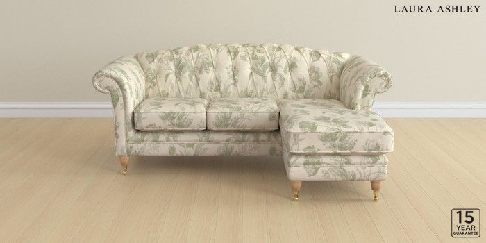 6.12.1 Buy Gloucester Button Back by Laura Ashley Medium Sofa Chaise - Universal Gosford Weave Sage Green Low Brass Castor - Light Oak from the Next UK online shop Click here to use our accessible website