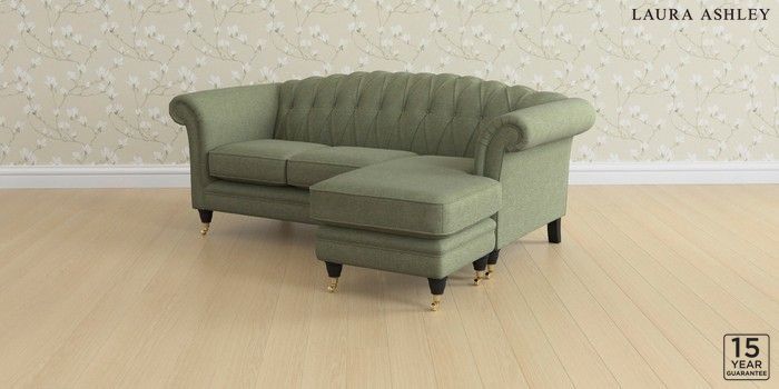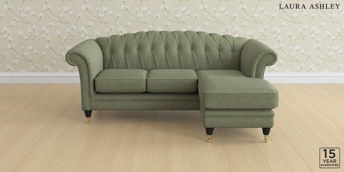 6.12.13 Buy Gloucester Button Back by Laura Ashley Medium Sofa Chaise - Universal Harley Moss Green Low Brass Castor - Black from the Next UK online shop Click here to use our accessible website