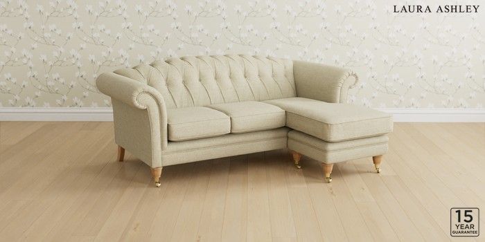 6.12.13 Buy Gloucester Button Back by Laura Ashley Medium Sofa Chaise - Universal Harley Natural Low Brass Castor - Light Oak from the Next UK online shop Click here to use our accessible website