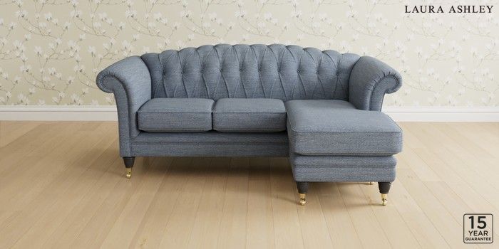 6.12.1 Buy Gloucester Button Back by Laura Ashley Medium Sofa Chaise - Universal Harley Seaspray Blue Low Brass Castor - Black from the Next UK online shop Click here to use our accessible website