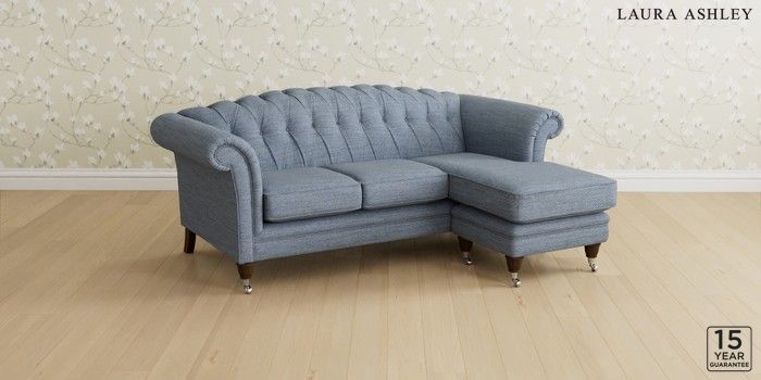 7.0.3 Buy Gloucester Button Back by Laura Ashley Medium Sofa Chaise - Universal Harley Seaspray Blue Low Chrome Castor - Chestnut from the Next UK online shop Click here to use our accessible website