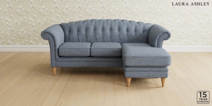 7.0.3 Buy Gloucester Button Back by Laura Ashley Medium Sofa Chaise - Universal Harley Seaspray Blue Low Turned - Light Oak from the Next UK online shop Click here to use our accessible website