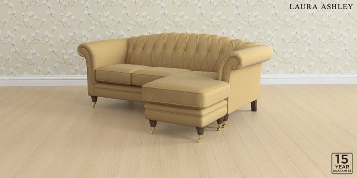 6.12.13 Buy Gloucester Button Back by Laura Ashley Medium Sofa Chaise - Universal Kinsham Ochre Yellow Low Brass Castor - Chestnut from the Next UK online shop Click here to use our accessible website