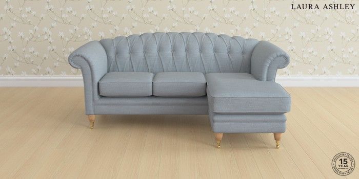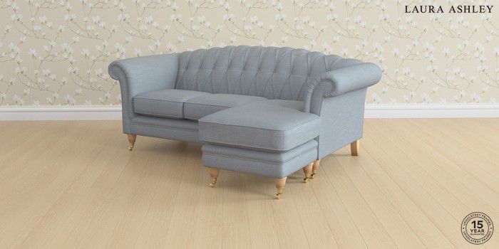6.12.1 Buy Gloucester Button Back by Laura Ashley Medium Sofa Chaise - Universal Kinsham Seaspray Blue Low Brass Castor - Light Oak from the Next UK online shop Click here to use our accessible website