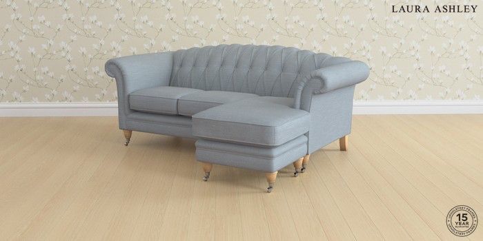 6.12.1 Buy Gloucester Button Back by Laura Ashley Medium Sofa Chaise - Universal Kinsham Seaspray Blue Low Chrome Castor - Light Oak from the Next UK online shop Click here to use our accessible website