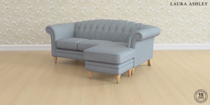 6.12.1 Buy Gloucester Button Back by Laura Ashley Medium Sofa Chaise - Universal Kinsham Seaspray Blue Low Turned - Light Oak from the Next UK online shop Click here to use our accessible website