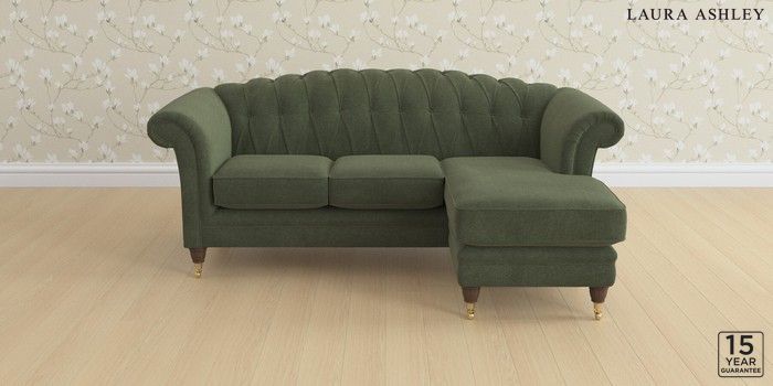 6.12.13 Buy Gloucester Button Back by Laura Ashley Medium Sofa Chaise - Universal Lundar Chenille Ivy Green Low Brass Castor - Chestnut from the Next UK online shop Click here to use our accessible website