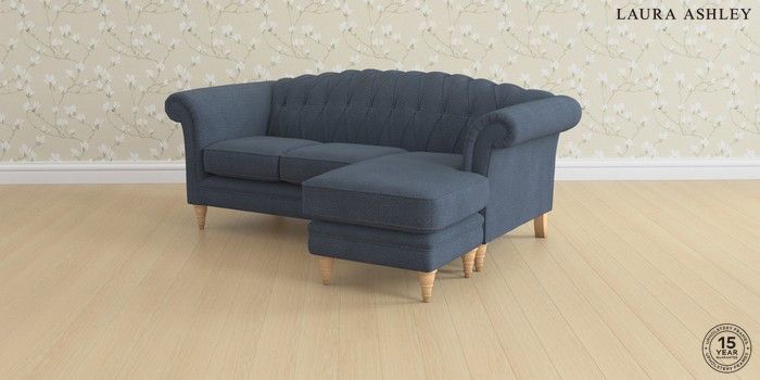 6.12.1 Buy Gloucester Button Back by Laura Ashley Medium Sofa Chaise - Universal Lundar Chenille Navy Blue Low Turned - Light Oak from the Next UK online shop Click here to use our accessible website