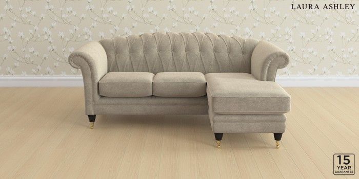 6.12.13 Buy Gloucester Button Back by Laura Ashley Medium Sofa Chaise - Universal Lundar Chenille Truffle Natural Low Brass Castor - Black from the Next UK online shop Click here to use our accessible website