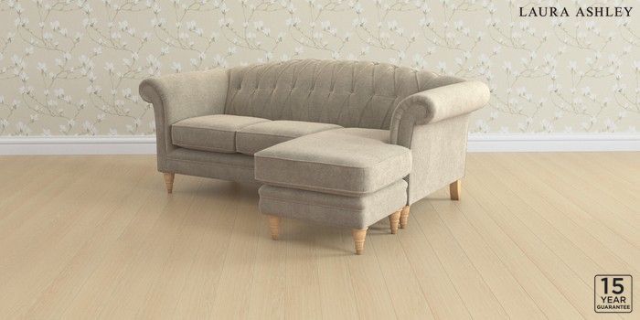 6.12.13 Buy Gloucester Button Back by Laura Ashley Medium Sofa Chaise - Universal Lundar Chenille Truffle Natural Low Turned - Light Oak from the Next UK online shop Click here to use our accessible website