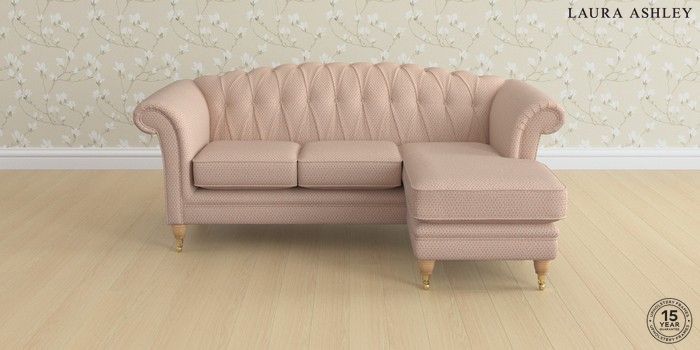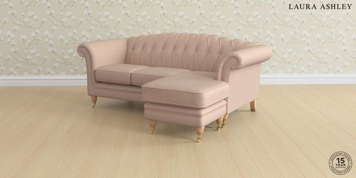 6.12.1 Buy Gloucester Button Back by Laura Ashley Medium Sofa Chaise - Universal Melbreak Geo Chalk Pink Low Brass Castor - Light Oak from the Next UK online shop Click here to use our accessible website