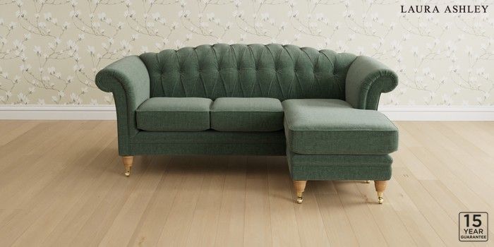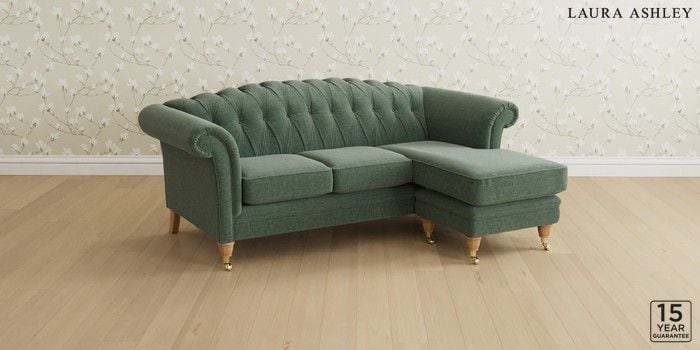 6.12.13 Buy Gloucester Button Back by Laura Ashley Medium Sofa Chaise - Universal Nantmor Fern Green Low Brass Castor - Light Oak from the Next UK online shop Click here to use our accessible website