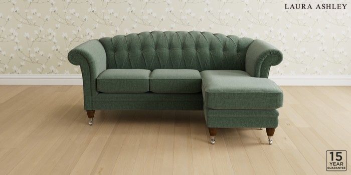 6.12.13 Buy Gloucester Button Back by Laura Ashley Medium Sofa Chaise - Universal Nantmor Fern Green Low Chrome Castor - Teak from the Next UK online shop Click here to use our accessible website