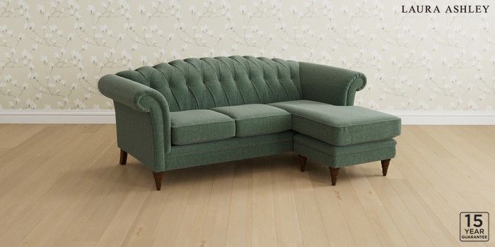6.12.13 Buy Gloucester Button Back by Laura Ashley Medium Sofa Chaise - Universal Nantmor Fern Green Low Turned - Teak from the Next UK online shop Click here to use our accessible website