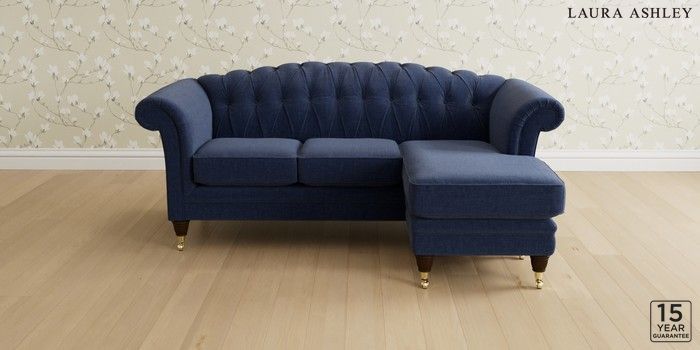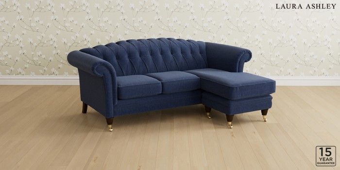6.12.13 Buy Gloucester Button Back by Laura Ashley Medium Sofa Chaise - Universal Nantmor Midnight Navy Low Brass Castor - Chestnut from the Next UK online shop Click here to use our accessible website