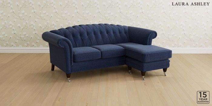 6.12.13 Buy Gloucester Button Back by Laura Ashley Medium Sofa Chaise - Universal Nantmor Midnight Navy Low Chrome Castor - Chestnut from the Next UK online shop Click here to use our accessible website