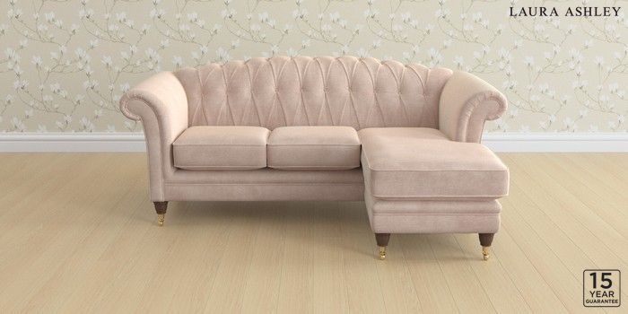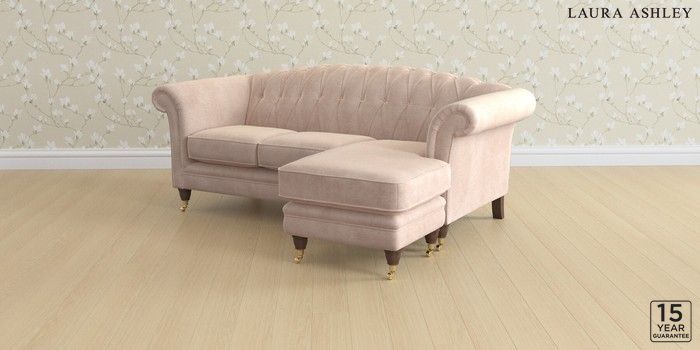 6.12.13 Buy Gloucester Button Back by Laura Ashley Medium Sofa Chaise - Universal Orla Chalk Pink Low Brass Castor - Chestnut from the Next UK online shop Click here to use our accessible website