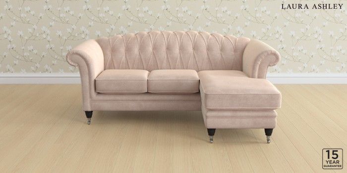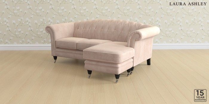 6.12.13 Buy Gloucester Button Back by Laura Ashley Medium Sofa Chaise - Universal Orla Chalk Pink Low Chrome Castor - Black from the Next UK online shop Click here to use our accessible website